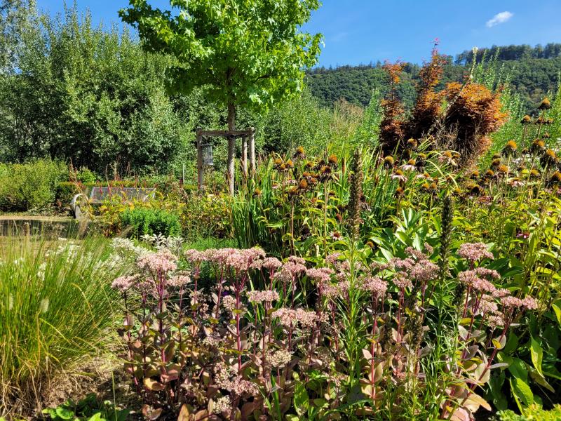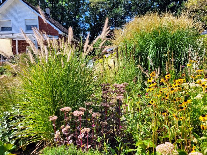 Rudeckia fulgida, Helenium und einge andere wären hier bei den Temperaturen und fehlendem Niederschlag welk bis bröselig.