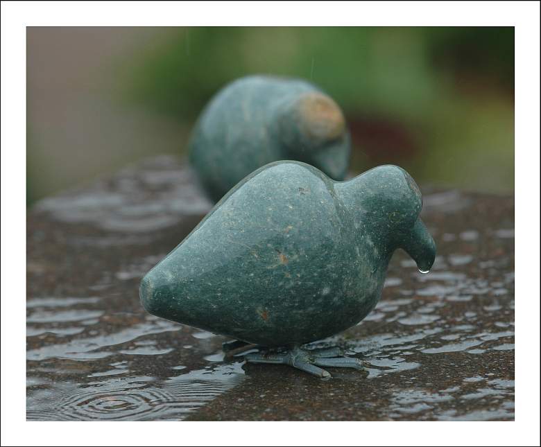 Hoffentlich bleiben die Tropfnasen so versteinert und wandern nicht wieder von Mensch zu Mensch. Das Wetter wäre danach ... Man könnte gerade noch nicht einmal so schöne Tropfen fotografieren wie Thomas und Huschgedutzje, selbst wenn man könnte ...., so schüttet es.Regengrüße von Artemisia