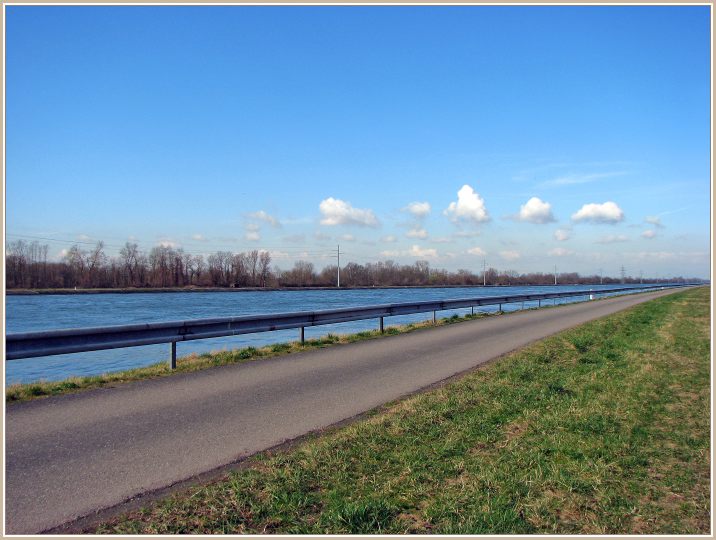 Der Grand Canal du Rhin ist 51 km lang und zwischen 110 und 140 m breit.Hier noch eine Aufnahme vom heutigen Tage aus einem anderen Blickwinkel.