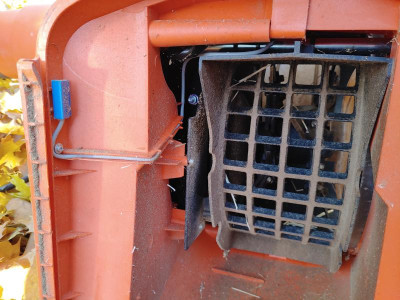 Im Praxisversuch war bei Daumendicke Schluss. Die Messer blockierten. Laut dem Zweitbesitzer schaltet dann ein Überlastschutz den Motor aus. Dann steckt man ab, öffnet zwei Schrauben und legt man den Messerraum frei. Kein Aufwand, bloß die schwarze Schraube könnte im Gras verloren gehen, ein Schraubendreher hilft beim Abziehen der Abdeckscheibe. Das Häckselgut verlässt über ein "Sieb" den Messerraum und in dem Sieb steckte ein Zweigstück fest und blockierte den Messerkranz. Konnte ich ohne Werkzeug entfernen. Bei der zweiten Blockade steckte das Holz hinter dem Messerkranz und war nur schwierig mithilfe eines Schraubendrehers und Rüttelei entfernbar. Solche Verstopfungen dürften die Ursache sein, dass die Messerschneiden ein paar Kerben aufweisen, aber sonst noch sehr scharf sind und der Häcksler wieder verkauft wurde. Blockaden nerven, also besser Blockaden vermeiden!