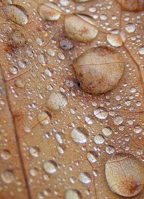 In Ismenes Tropfen-Fall werde aber wahrscheinlich nur ein paar Regentropfen die gleiche Stelle auf dem Blatt getroffen haben, so sind sie halt was größer.Realistische Grüße ;DNina