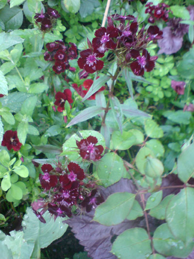 ;)hier, diese kleinen hübschen blühen rechts daneben...und damit steigern sie sich noch in der wirkung gegenseitig, finde ich...diese bartnelke gehört für mich unbedingt in jedes beet mit dunkelroten rosenund epoca könnte ich mir wunderbar als nachbarin zu francis dubreuill vorstellen :Daber neben fair bianca fühlt sie sich wohl auch ganz wohl