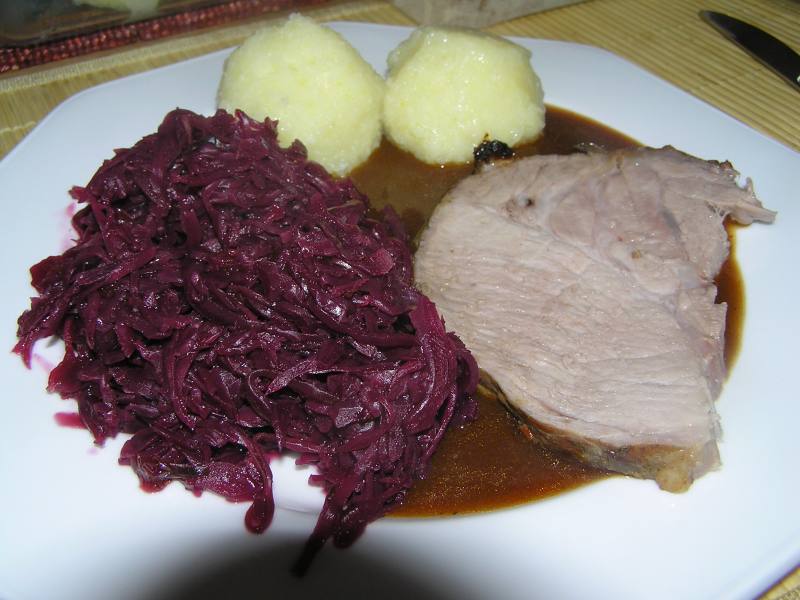 bei mir auch,nur keinen schweinebraten sondern kaninchen eigene zucht.die das dann auch mit knödeln und rotkraut.