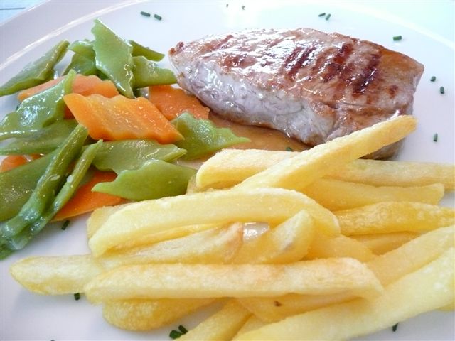 Crambe, der Teller ist von Hutschenreuther, wie heißt die Serie?Die Tiefkühleraktion geht weiter:Heute gab's Steak und ein Paket Hirsebällchen mit Gemüse und natürlich gemischten Salat