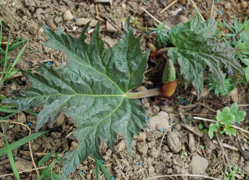 Glaucidium palmatum (weiße Form). Leider durch den starken Regen verschmutzt.