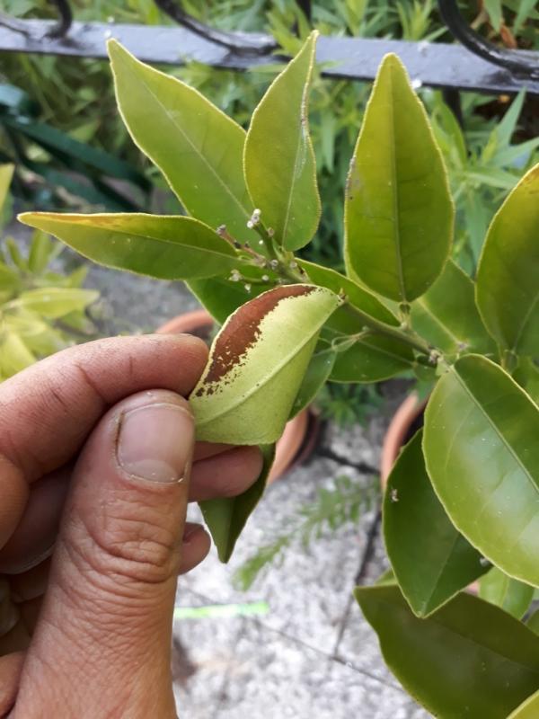 .....Ich hab an einigen Zitrusblättern diesen braunen Belag auf der Unterseite. Was ist das und was kann ich dagegen tun?....