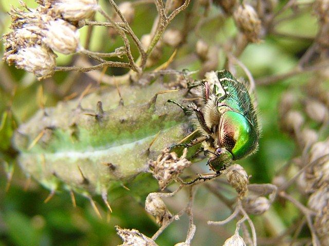 :Ich habe nur noch ein Bildnis von mir beim Fotografieren eines Gartenbewohners. Zu erkennen bin ich am langen Haar, gespiegelt im offensichtlich ordentlich geputzten Panzerkleid