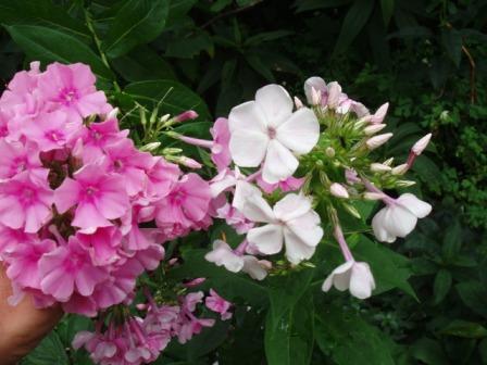unlängst habe ich mir ein paar neue Phlox panicultas blühend im Topf gekauft (nach dem Reinfall mit den immer noch nicht blühenden Amethysten), wieder ist ein Blue Boy dabei, mal sehen wie lange er diesmal hält. Und ein sehr niedrigwüchsiger aus der "Flame"-Serie, mal sehen ob der wirklich so zwergig (keine 40 cm hoch) bleibt.Zum Vergleich habe ich mal von allen meinen Phloxen eine Blüte abgezwickt; interessant wie unterschiedlich groß sie sind! von links nach rechts:Europa/Bright Eyes/Pink Flame/Wilhelm Kesselring/Wuerttembergia/Ping Pong/Blue Boy