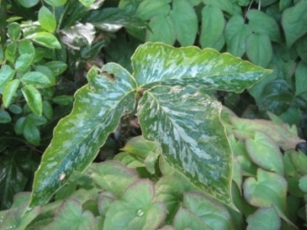 sieht toll aus. zuordnung schwierig. kann ein juveniles blatt sein, das adult mehr teilblätter hat oder es gehört zu einem der 3-teilblättrigen arten. da gibt's einige kandidaten. hegen! solche panaschierten sachen sind immer interessant. vielleicht im herbst mal ausbuddeln + die knolle fotografieren. vielleicht lässt sich dann was eingrenzen.blatt würde zu a. triphyllum passen, die zeit jetzt passt auch.