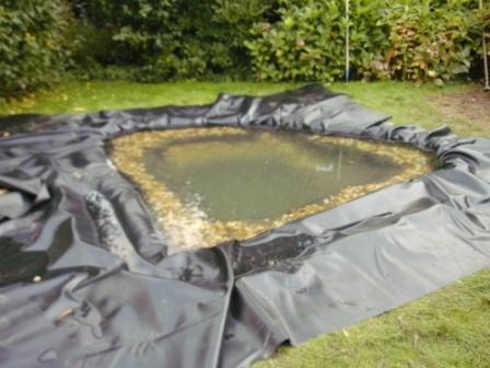 Hier ein schneller Zwischenbericht:Das Loch ist fertig, mit mehreren Schichten Vlies bedeckt und Folie haben wir auch schon verlegt. Anschließend haben wir stundenlang Grundwasser einlaufen lassen. Nun brauchen wir eine Pause, bevor wir nachher oder morgen früh den Rand incl. Kapillarsperre gestalten. Fotos folgen!Käfermama
