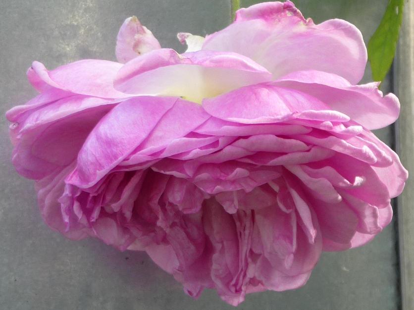Eine etwas zerknitterte Blüte von Mme Auguste Charles.
