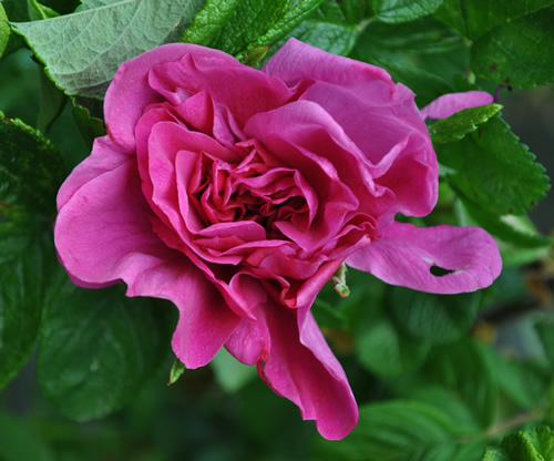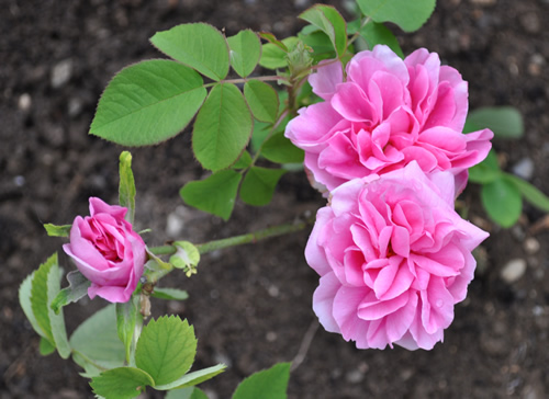 Rosa pendulina ist voller halboffener Blütenknospen, hier die erste, diese Farbe gefällt mir sehr: