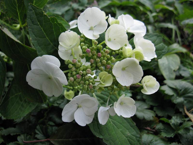 ?Bei mir blüht gerade H. macrophylla 'Shamrock'. Es ist eine Hortensie, die als Wildform in Japan gefunden wurde und von Corinne Mallet mit einem westlichen Sortennamen versehen wurde. http://www.izu.fm/hydrangea/yawatano.html