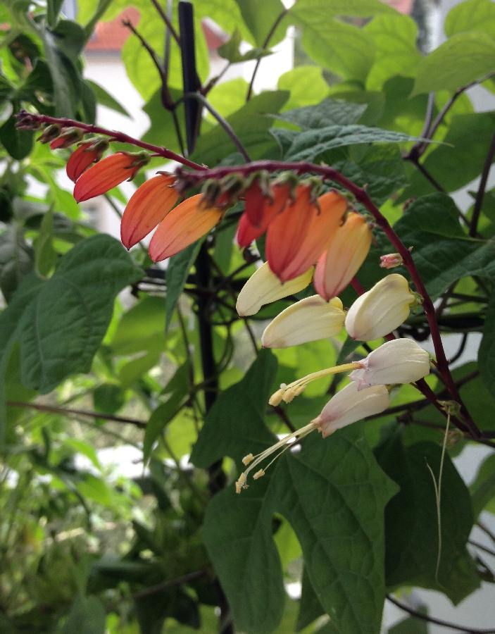 Ipomoea lobata hat im kühlen Frühsommer wirklich gebraucht, um in die Gänge zu kommen, sie hat jetzt aber das Rankgitter erobert und zeigt ihre schönen Blütenstände.