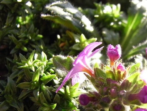 Ein kleiner Schatz Erinus alpinus, der Alpen-Leberbalsam,letzte Blüte, 1cm Durchmesser.