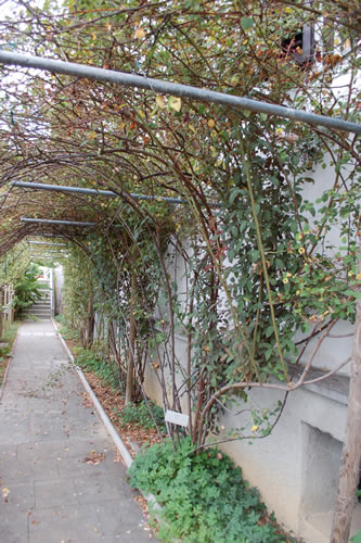 Es hätte noch viele Rosen zu zeigen, aber zum Abschluss jetzt noch die Rosenbogen. Nach den letzten Rosengärten in den Arboreten, endlich ein Rosengarten nach unserem Gout.Hier die älteren, noch in Holz: