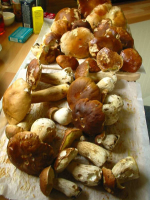 In den siebziger Jahren hatten wir mal einen Pilzlehrgang im Schwarzwald gemacht. Es hatte uns sehr gut gefallen. Die Pilze wurden bestimmt und gleich im Wald auf einem Grillplatz zubereitet. Die ersten beiden Tage wurde ich zwar von einer fetten Angina niedergestreckt, aber mein GG konnte hingehen und eine gute Freundin von uns war sowieso dabei. Am dritten Tag bin ich mitgegangen, dicken Wollschal und Antibiotika intus. Schön wars trotzdem und wir haben viel gelernt.