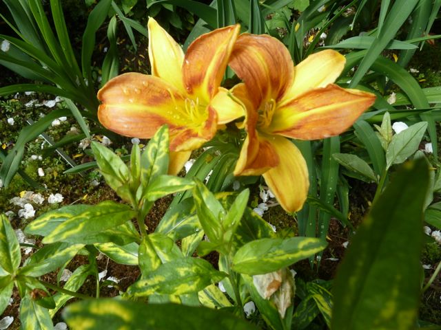 Ist zufällig dein Schlafzimmerfenster in der Nähe, Pearl?Hier vor dem Haus blüht Hemerocallis minor schon eine Zeit.