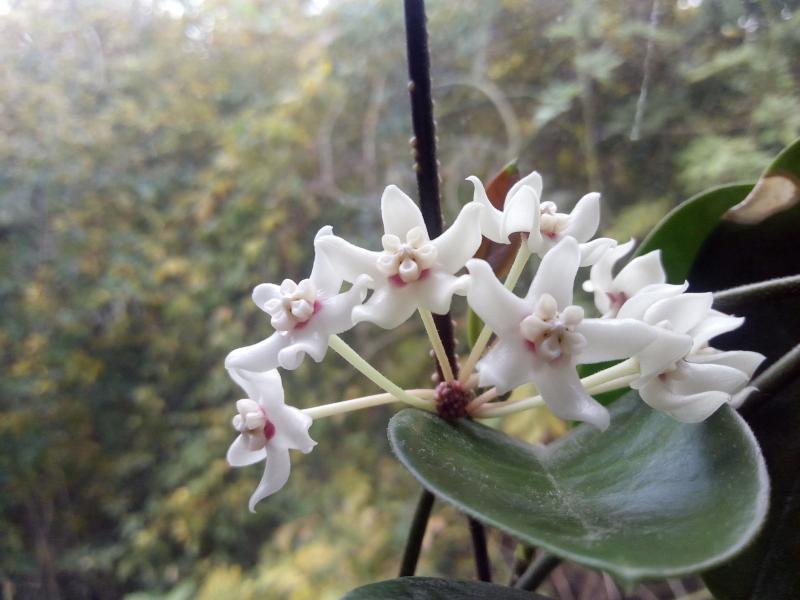 Dagegen blüht mal wieder die völlig unkomplizierte Hoya memoria (syn. Hoya gracilis)