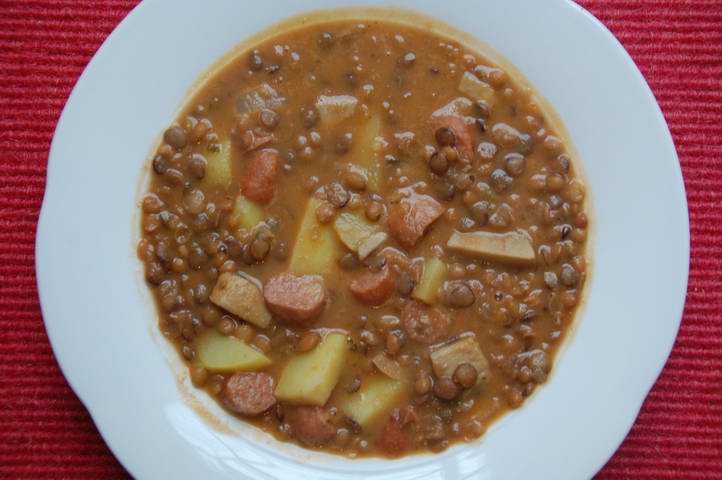*Heute gab es Linseneintopf mit Cabanossi, Quitten und Kartoffeln.
