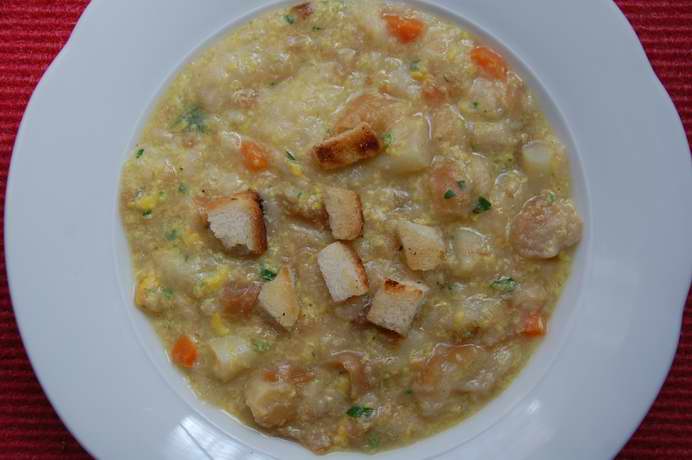 Bei mir gabs Brechbohnensuppe mit Hack, meine Freundin hats zum ersten mal gegessen und war begeistert. (Ablegen bei"rezepte für Zahnschmerzen/Op´s