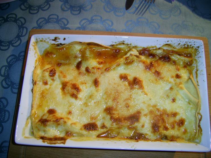 Am Dienstag hatten wir eine feine selbstgemachte Lasagne bolognese und gestern gab es Hähnchenkeulen in Tomatensauce mit pommes frites.lg, borragine