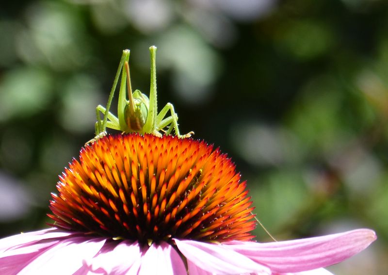 Dieser Heuschreck hat die Taglilie 'Taunus Pink Lover' zum Fressen gern.