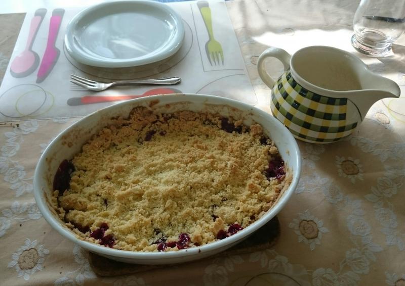 Hier gab es gerade ein Pflaumen-Brombeer-Crumble. :)