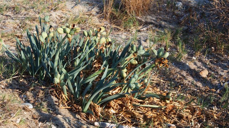 mit der Dünen-Trichternarzisse, Pancratium maritimum, lieber nenne ich sie Strandlilie, geht es mir wie Eckhard mit den Päonien. Ich habe sie noch nie blühend gesehen! Entweder war ich zu früh im Mai an dem Standort oder jetzt zu spät im September und konnte nur die Samenstände fotografieren. Der Meerfenchel, Crithmum maritimum wächst am selben Standort.