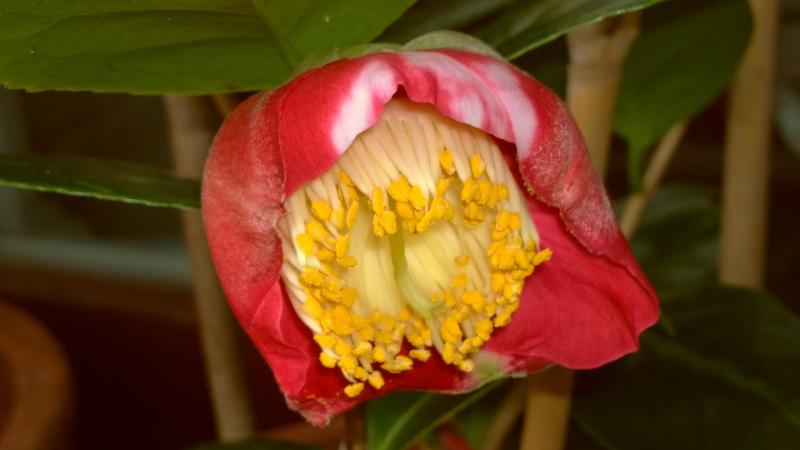 Ganz heimlich ist unsere Kamelie aufgeblüht.