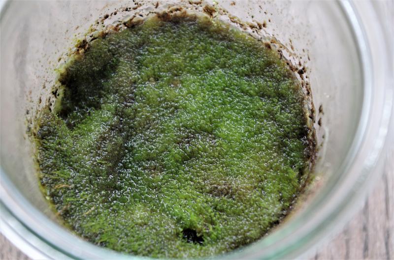 Wenn dieser Moosteppich da ist sollte man gelegentlich ein wenig besprühen. Die begeiselten Spermatozide können sonst möglicherweise nicht zu den Eizellen schwimmen.