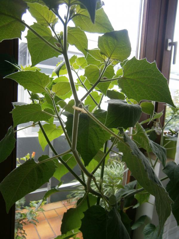 Unbemerkt ist bei mir eine Physallis-artige Pflanze bei mir gewachsen. Die hatte Glück unbemerkt bis zu einer gewissen Größe hinter den Erbsen zu wachsen, ansonsten hätte ich wo sie noch klein war für einen gemeinen Nachtschatten gehalten und gejätet. Interessant ist jedoch, dass sie jetzt voll ausgewachsen trotzdem recht anders aussieht als die Physalis aus dem Baumarkt (Sorte leider unbekannt). Im Gegensatz zu Baumarkt-Physallis, sind die Blätter glatt und dünn, das gleiche gilt für die Stängel, auch die Lampions sind viel mehr in der Anzahl, jedoch gleichzeitig auch kleiner. Weiß jemand um was es sich da, bei der wildgewachsener Pflanze handelt?