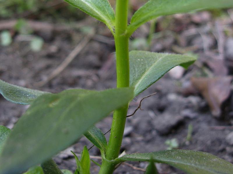 Der Jungtrieb der Pflanze von Gaißmayer lässt nur wenige einzelne Härchen erkennen.