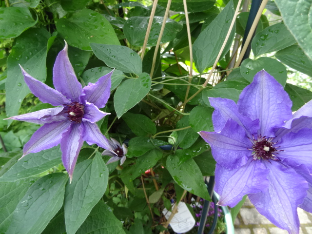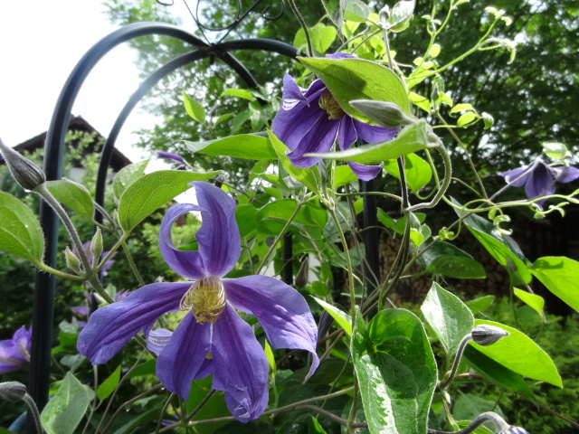 Ich geh jetzt so nach 2-3 Tage mit Schere und Bindfaden bewaffnet und schau meine ganzen Clematis durch, ob ich was binden muß. Wenn man zulange wartet, sie schon mal hängen, dann wird es schwierig das Gewusel zu trennen und hochzubinden ohne das was beschädigt wird. Da habe ich schon so mein Lehrgeld bezahlt, weil ich zu oft mal zu faul war das zu machen. Das passiert mir nicht mehr so leicht.