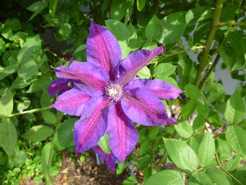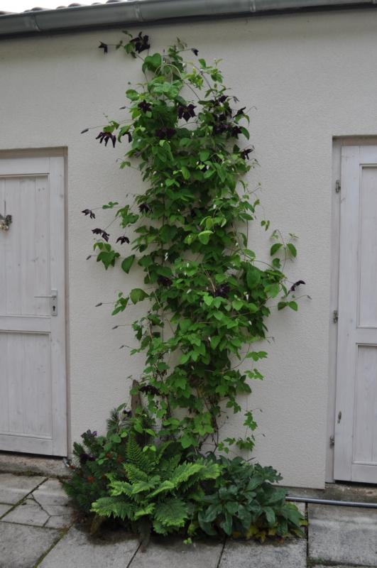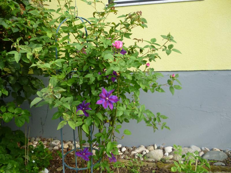 Hier noch eine Clematis montana ‚Broughton Star‘, die lasse ich am Zaun entlang wandern: