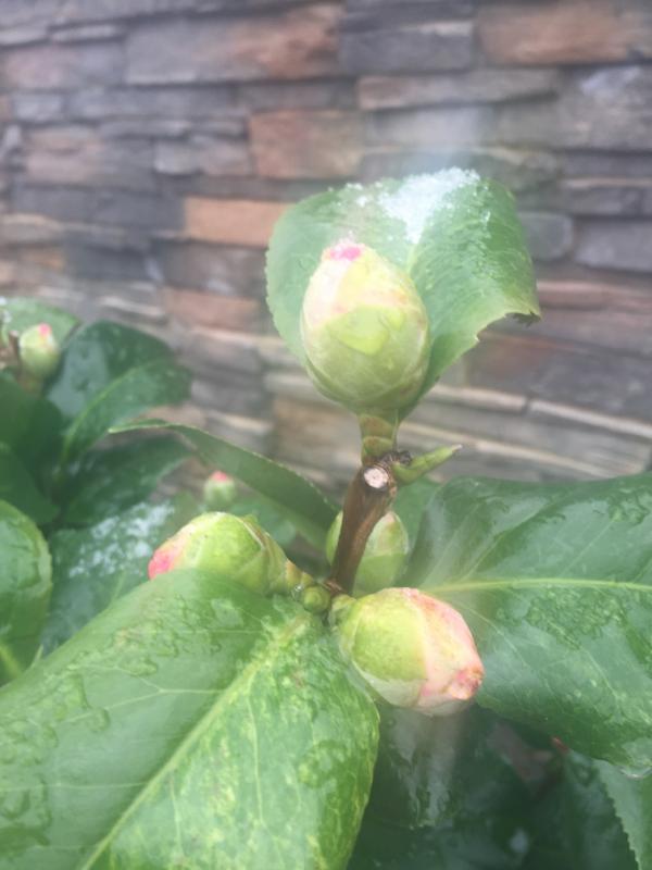 Meine Rosen und der Portugiesische Loorbeer treiben weiter frische Blättchen aus und die Taglilie hat nochmal dicke BlütenKnospen gebildet, die rosa No Name- Kamelie auch, aber das sollte sie ja wohl auch .... also bei uns regt sich weiter was. In den nächsten Tagen wird es auch wieder deutlich wärmer.