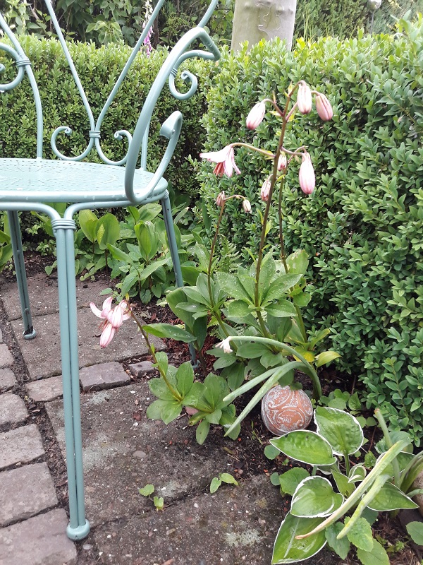 Heute früh habe ich meine weißblühende Martagon aus ihrem Gazesäckchen befreit. Sie hat keine einzige Knospe verloren. Eine andere, etwas exponierter stehende wurde leider vom Spätfrost so geschädigt, dass die Knospen stecken blieben.