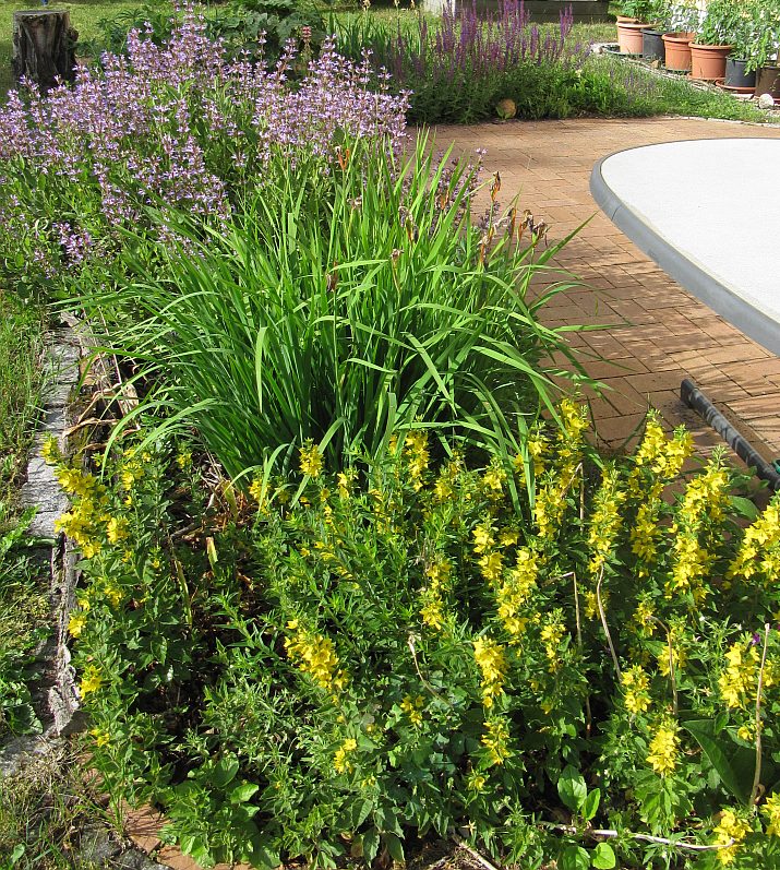 Ja, der Goldfelberich blüht schön, hier ist er die Tage ebenfalls aufgeblüht. Im trockenen Beet ist er vermutlich zahm, aber hier im fetten Lehm explodiert er irgendwann und unterwandert alles andere, fast so schlimm wie Schachtelhalm...