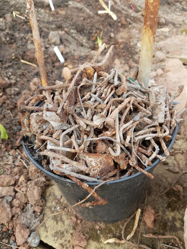 Das auf halb Sechs im Eimer ist einer dieser Eisenhaken die man früher in die Wengertpfosten geklopft und daran die Drähte befestigt bzw. eingehängt hat... . Anstatt dieses Wochenende endlich die letzten wurelnackten Neuzugänge zu versenken (von den getopften ganz zu schweigen), habe ich gestern u. A. wieder einen Trockenrasen bewandert, dieses Mal im fast Badischen. Und heute zwei Albhöhlen angeguckt. Auch schön und ich kann dann wieder jammern, dass ich immer noch nicht fertig bin ;D.