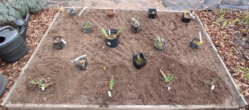 Ich jammer jetzt nur noch ganz leise denn es ist deutlich vorangegangen. Dank der 'Gartenkralle' der Nachbarin habe ich am Sonntag die Erde im neuen Wühlmauskäfig nochmal gut verrührt. Eigentlich dachte ich, dass das Gerät nix taugt aber tatsächlich hat sich beim drehen auch das noch kleine neue Unkraut nach oben gearbeitet. Vorher musste ich allerdings händisch Ahornsamen lesen. Irgendein übereifriger Ahornbaum will sich dieses Jahr unsterblich machen. . Nun können die Iris in die Erde. Hier sollen hauptsächlich kleinere (MTB BB ...) hin. Endlich habe ich auch Consummation, Frosted Velvet und Among Friends dort vereint. Hat an anderer Stelle wieder Pflanzplätze ergeben. ;D