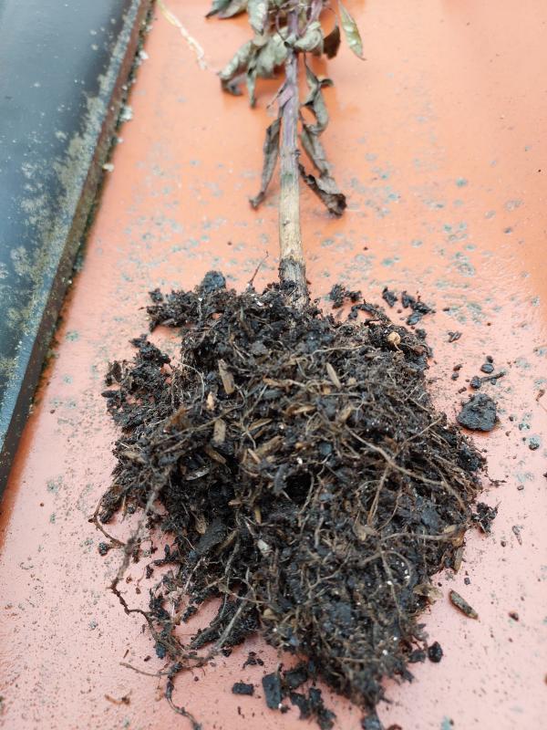 Schon raus. Es is tatsächlich noch dünnes Wurzelwerk dran, aber auch viele Würmer, wie mini Regenwürmer.