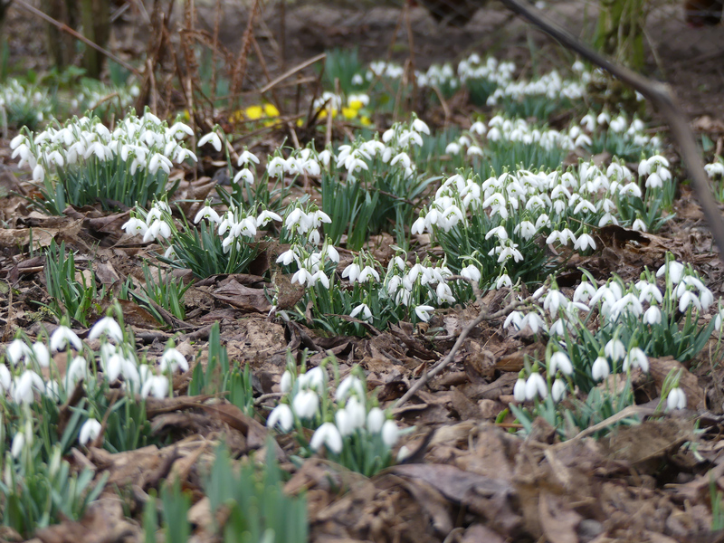 Hier bleiben nun immer wieder Passanten stehen und bestaunen die Schneeglöckchen.