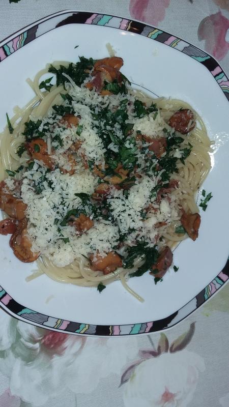 Am Samstag gab es endlich mal wieder Spaghetti mit Pfifferlingen, Pancetta, Petersilie und Parmesan. :D