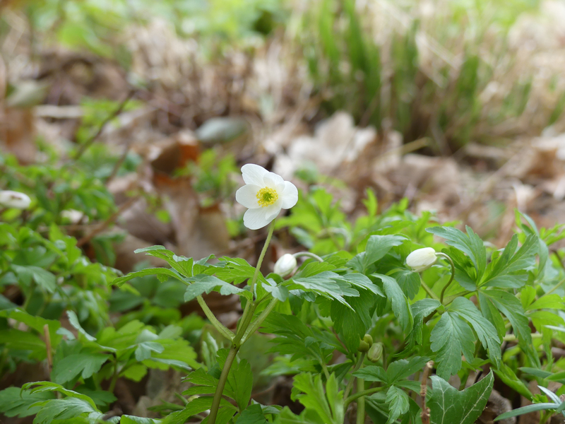 Anemone blanda 'White Splendour' blüht auch schon recht schön, nur manche sind angeknabbert: