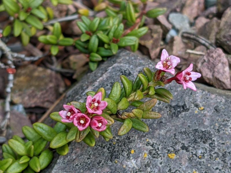 Bei Kalmia procumbens braucht man fast eine Lupe, um die Blüten zu erkennen...