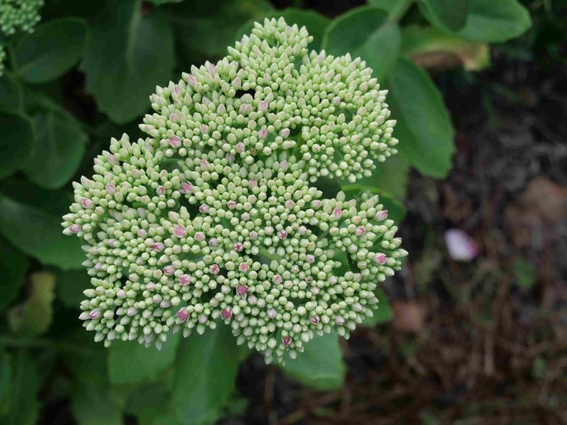 Und Sedum telephium "Herbstfreude " öffnet allmählich die Knospen.