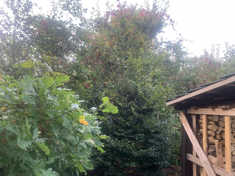 Im hinteren Bereich des Gartens ist uns über den Sommer entgangen, wie sehr der Wein gewachsen ist. Erst als er nun begann, sich umzufärben, haben wir das Ausmaß erkannt 8)