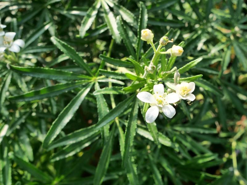 Absolute Klimaprofiteure sind die Choysias.Sattgrün stehen sie im ansonsten jämmerlichen Beet und schieben gerade eine 2. Blüte.