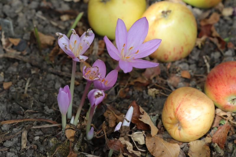Lerchenzorn, bei Dir sieht es aus, als sei Eure Region mit Niederschlag verwöhnt, alle Pflanzen so frisch und üppig! Heute hat sich eine Herbstzeitlose mit Macht nach etwas Regen aus dem Boden geschoben, der sieht man an, dass es hier zu trocken ist. Solche an den Spitzen eingekrumpelte Blüten habe ich noch nie gesehen.