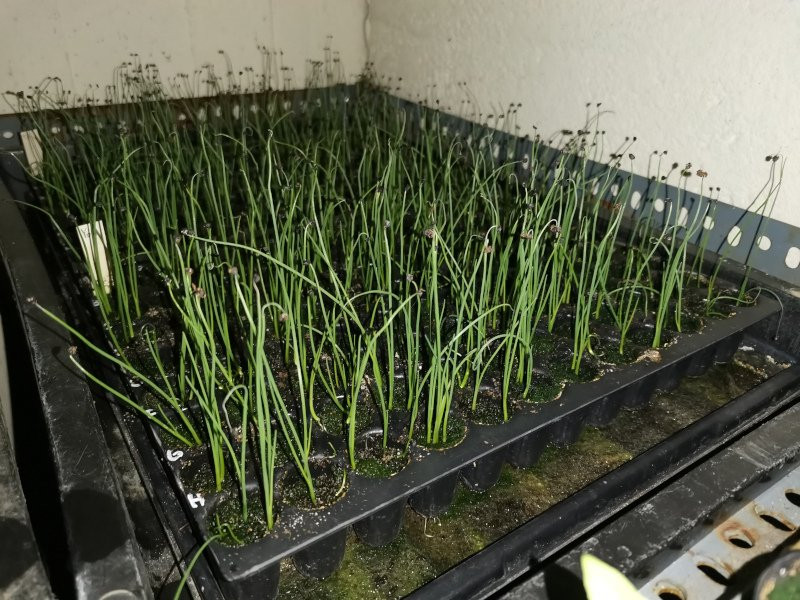 Frühlingszwiebeln mache ich einzeln und in einer Platte mit kleineren Töpfen. 2cm rund und 4cm tief.